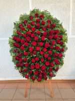 Венок, выполненный из роз, символизирует глубокую любовь и уважение к ушедшему. Каждый цветок подчеркивает важность памяти о близком человеке. Этот венок станет достойным украшением на похоронах или мемориальной службе, выражая искренние соболезнования и поддержку в трудный час.